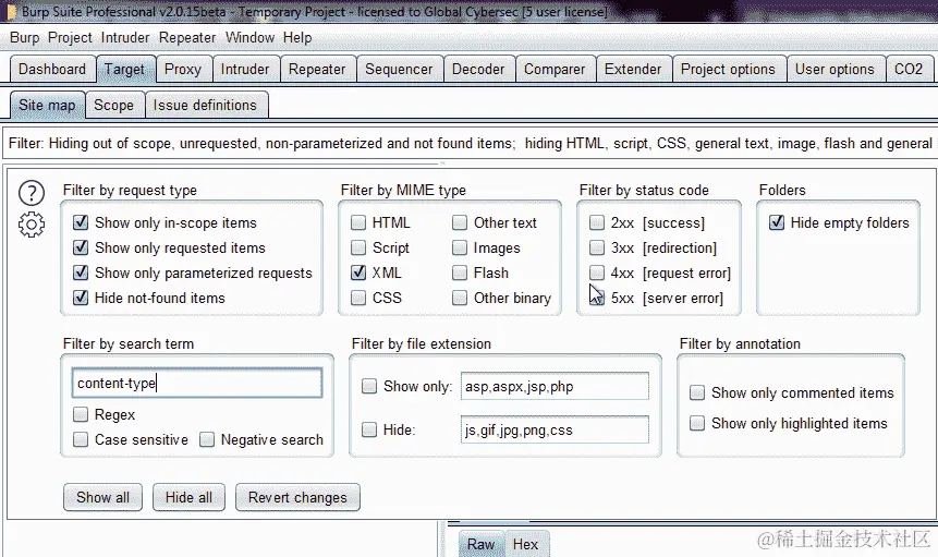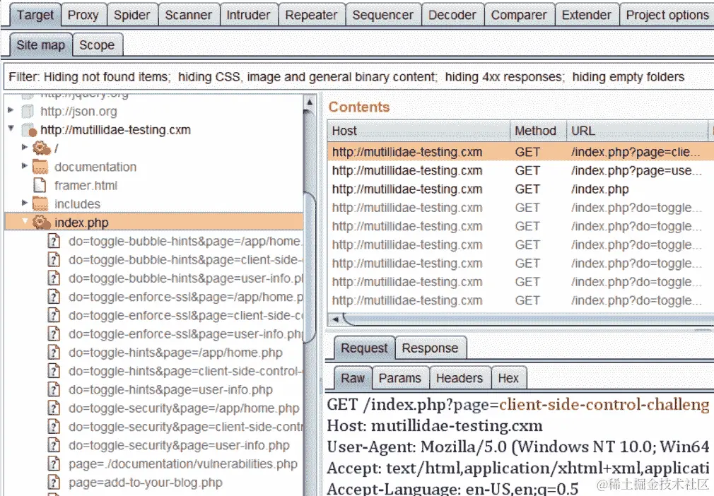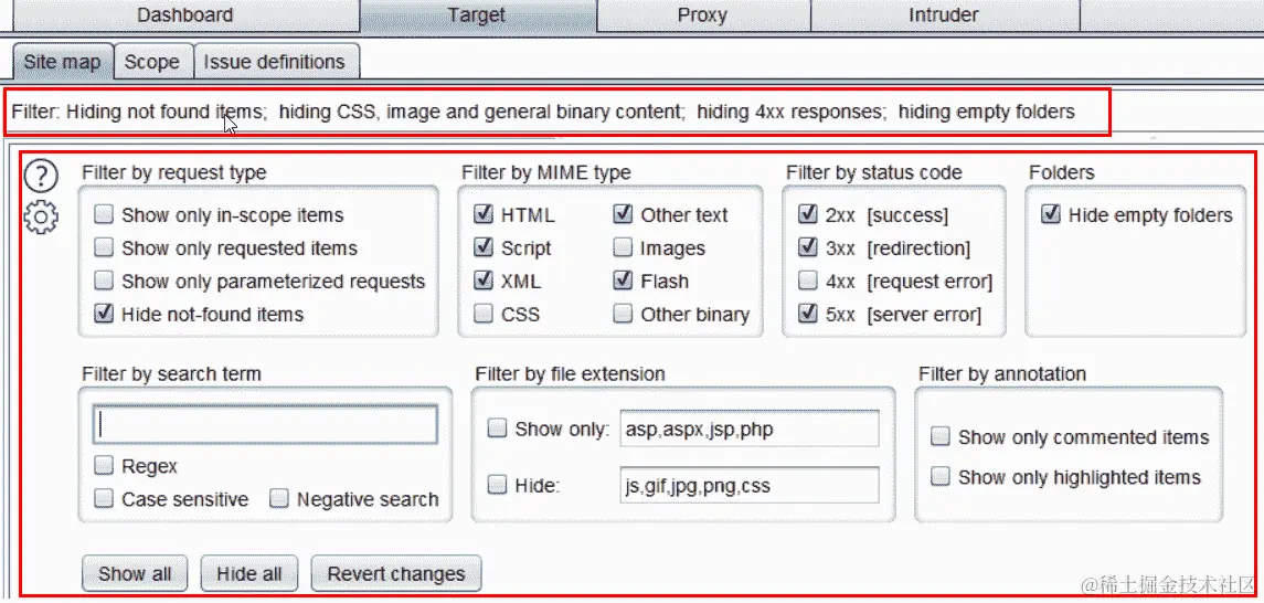 与确定目标范围一样,减少我们收集的数据中的噪音非常重要。我们将使用目标白名单技术,并使用 Burp 目标功能来过滤和减少测试现代应用程序可能引入的混乱。