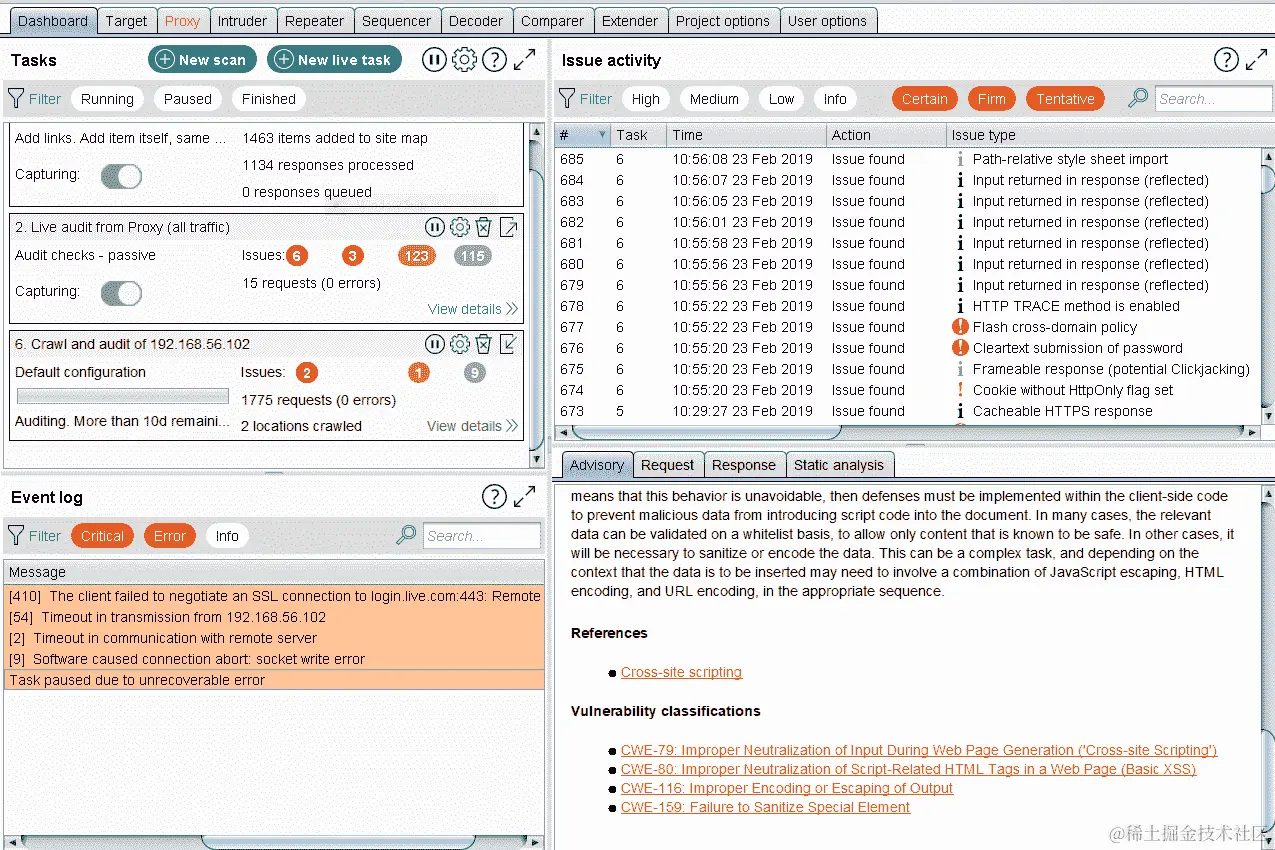 在 Burp 的专业版中,甚至可以自动启动对范围内项目的漏洞扫描。