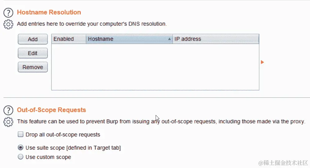 - 启用如果超出范围则不将项目发送到代理历史记录或其他 Burp 工具选项:此选项可以在代理|选项|其他中找到。启用此选项可以防止 Burp 将超出范围的请求和响应发送到代理|历史记录和其他 Burp 工具,如扫描器和目标。这些请求和响应被发送和接收,但不会记录在 Burp 的任何功能集中。