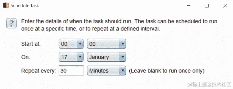 - 选择何时开始任务和间隔。在繁忙的工作中,每 30 分钟保存一次是一个不错的开始间隔:
