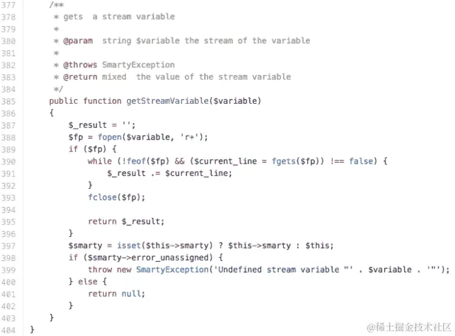 在这段代码片段中,我们可以看到getStreamVariable()方法可能容易读取任何文件,具体取决于服务器权限。此外,我们还可以调用其他方法。