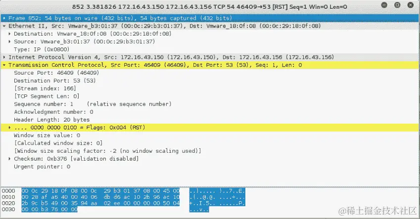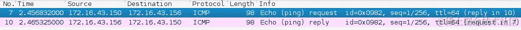 从前面的屏幕截图中,我们知道已向目的地(IP 地址=172.16.43.156)发送了一个 ICMP echo 请求数据包。同时,发送主机(IP 地址=172.16.43.150)收到了一个 ICMP echo 回复数据包。所需的往返时间为.869 ms,在整个过程中没有丢包。
