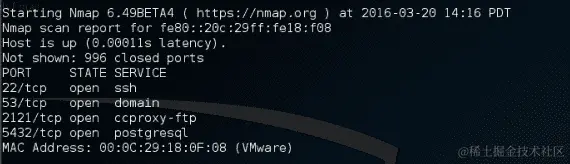 如果您的目标使用 IPv6 地址,例如fe80::20c:29ff:fe18:f08,您可以使用ping6工具来检查其可用性。您需要为命令指定-I选项,以针对链路本地地址进行操作: