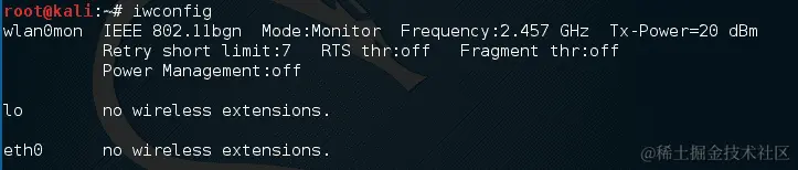 - 在目标网络上被动扫描无线流量。确保您的无线网卡处于监视模式: