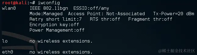 此外,如果我们运行ifconfig wlan0命令,我们可以看到我们伪造的 MAC 地址: