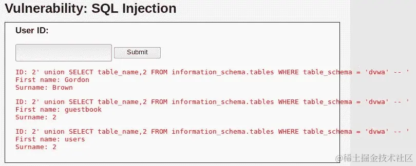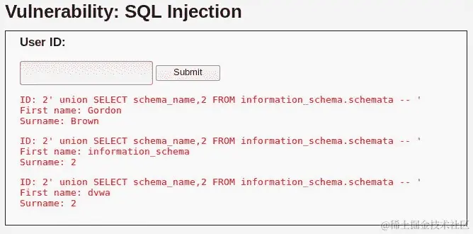 SQL 注入漏洞