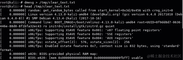 作为 PoC,让我们对一个明文样本执行ent,例如dmesg的输出(内核消息缓冲区),其中包含大量的文本,包括数字和符号: