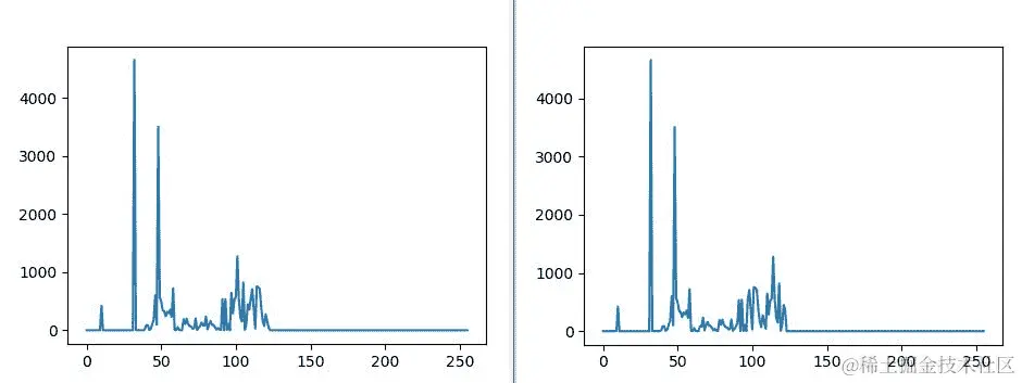 另一方面,查看加密文件的图表时,分布更加混乱: