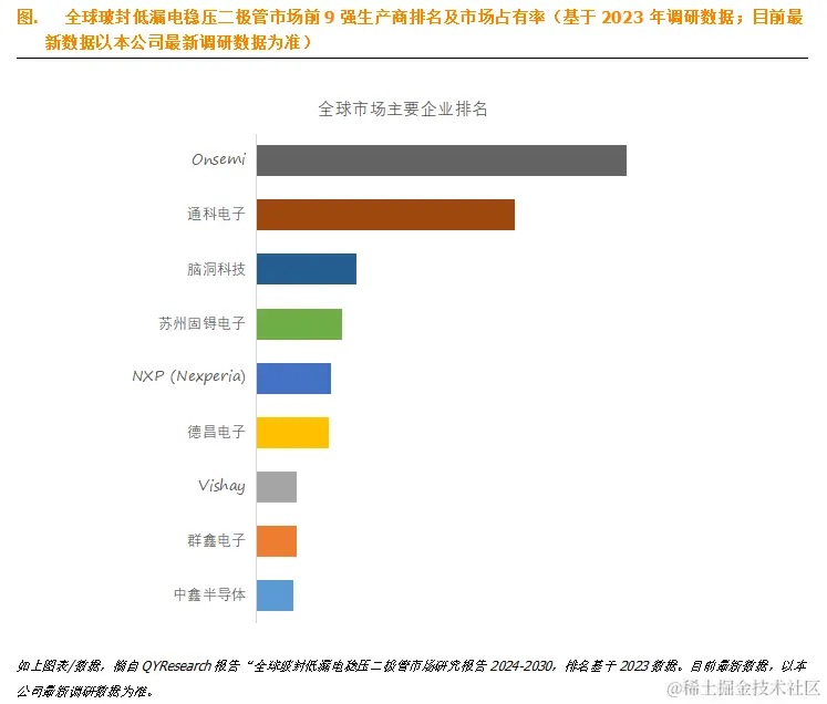 根据QYResearch头部企业研究中心调研,全球范围内玻封低漏电稳压二极管生产商主要包括Onsemi、通科电子、苏州固锝电子、脑洞科技等。2023年,全球前三大厂商占有大约59.0%的市场份额。