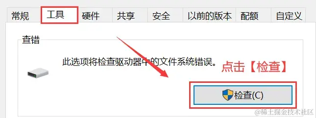 步骤4:点击【检查】,开始检查驱动器中的错误,如果发现错误,按照提示进行修复;