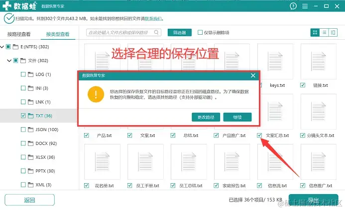 步骤3:将文件都选择完毕后,点击【导出】,并选择一个新的位置保存恢复后的文件。