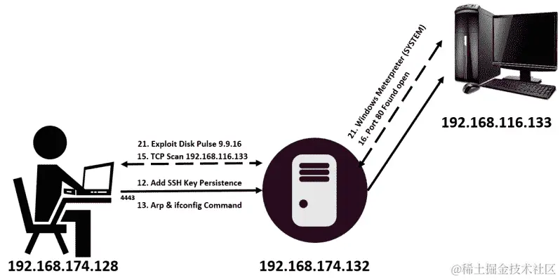 一旦我们发动了攻击,利用就会被执行。请注意主机图标的变化,如下面的屏幕截图所示。主机已成功被攻陷: