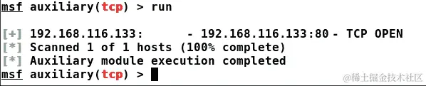 现在我们已经将目标主机添加到 Armitage 控制台,我们将执行一个快速端口扫描,以查看这里打开了哪些端口。要执行端口扫描,请右键单击主机,然后选择扫描选项,如下面的屏幕截图所示。这将在 Armitage 控制台的底部窗格中列出目标系统上的所有打开端口: