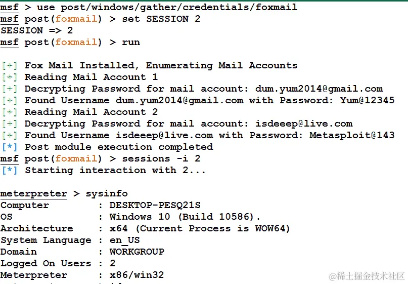 让我们从 Meterpreter 运行此脚本,看看情况如何: