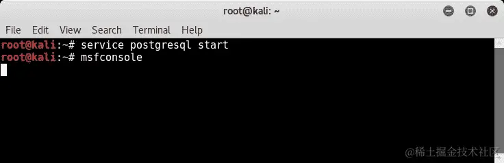 在实际启动 Armitage 控制台之前,首先我们需要启动postgresql服务和 Metasploit 服务,如下面的屏幕截图所示: