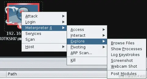上面的示例显示了在 Meterpreter 子菜单中创建弹出窗口。但是,只有在我们能够利用目标主机并成功获取 Meterpreter shell 时,此弹出窗口才可用。