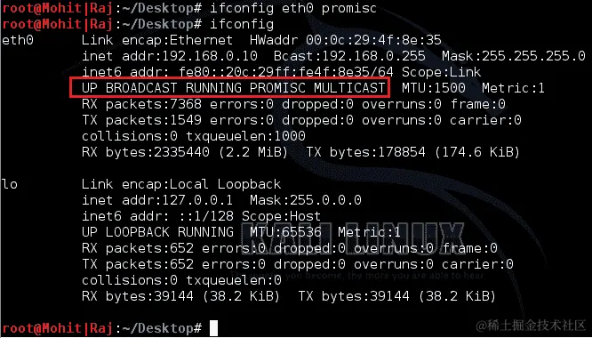 数据包已发送,但没有收到响应。您不需要担心,因为我们有我们的 Python 嗅探器来检测响应。因此运行嗅探器,无需以混杂模式运行它,并重新发送ACK数据包: