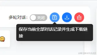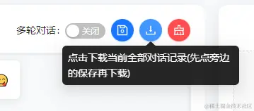 - 可以保存当前界面的全部历史聊天记录为md并下载,先点击保存,然后再点击下载。