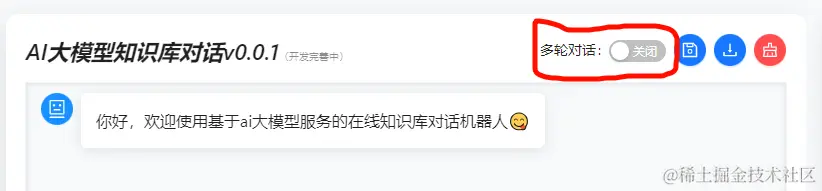 - 对话界面可选支持单轮和带历史记录多轮对话,默认单轮对话。