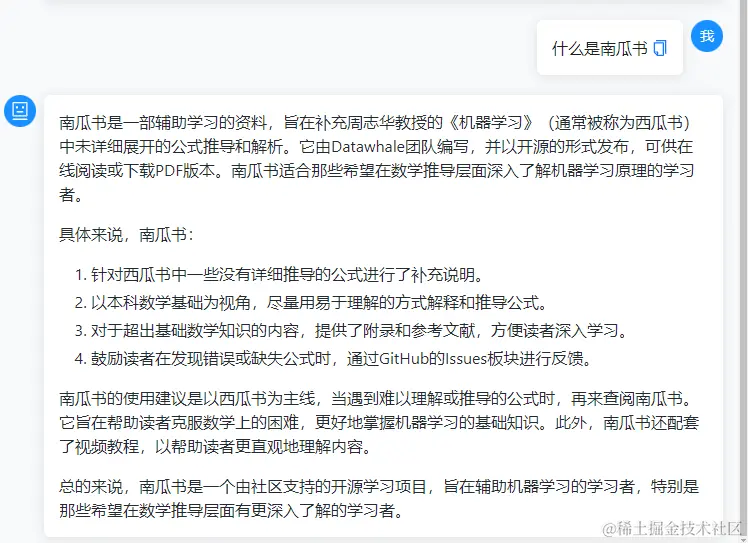 动手学,把自己学到的东西动手自己做出来并输出,是最好的学习方式。最近一直在关注和使用各种ai工具,也在学一些ai开发的知识,看到datawhale的开源学习教程,动手学大模型开发( github.com/datawhalech… )这个教程比较全面,正好可以结合自己常用的数据平台开发工具dash来开发一个web界面,做个简单的demo用起来,可以本地调用各种大模型api来和自己的文本知识库来对话。本来准备报名进群一起学习的,看到的时候报名时间刚好过了半天,就自己来自学一下了。先来看一下做出来的结果吧: