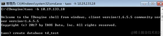 安装完成后,默认会生成C:\Tdengine目录,在此目录下运行taos命令,连接服务端。