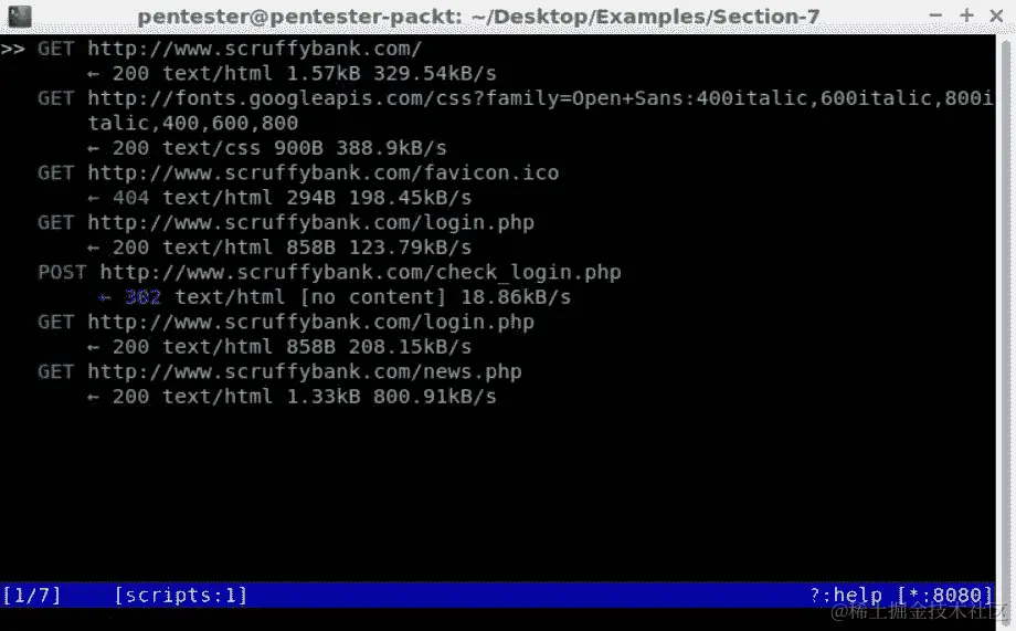 让我们回到浏览器,打开www.scruffybank.com/login.php并刷新几次。关闭代理控制台,然后再次打开结果: