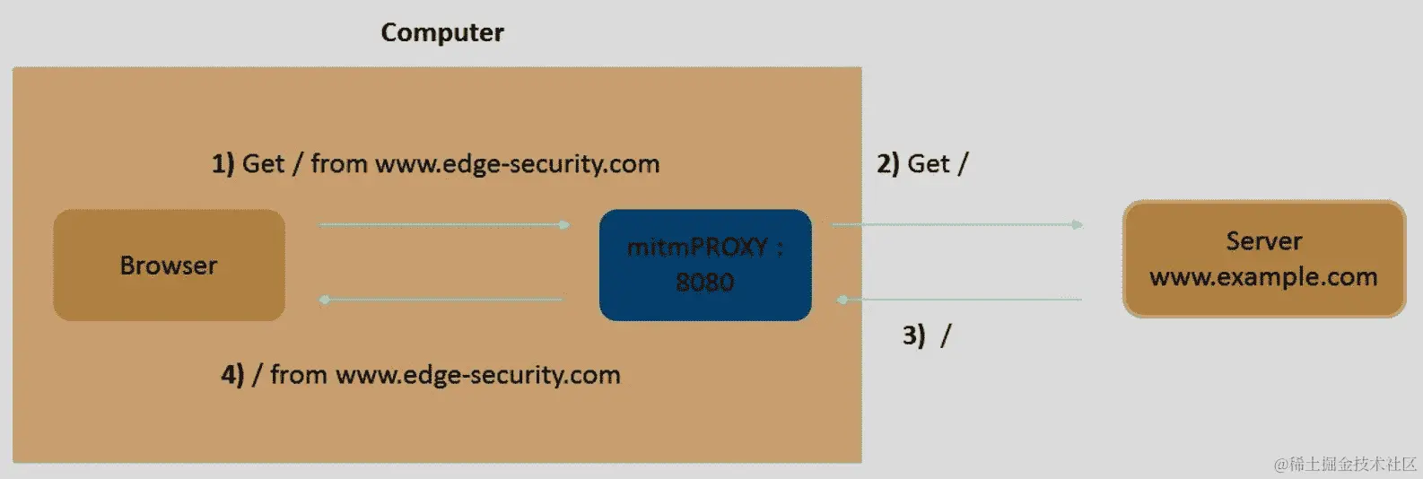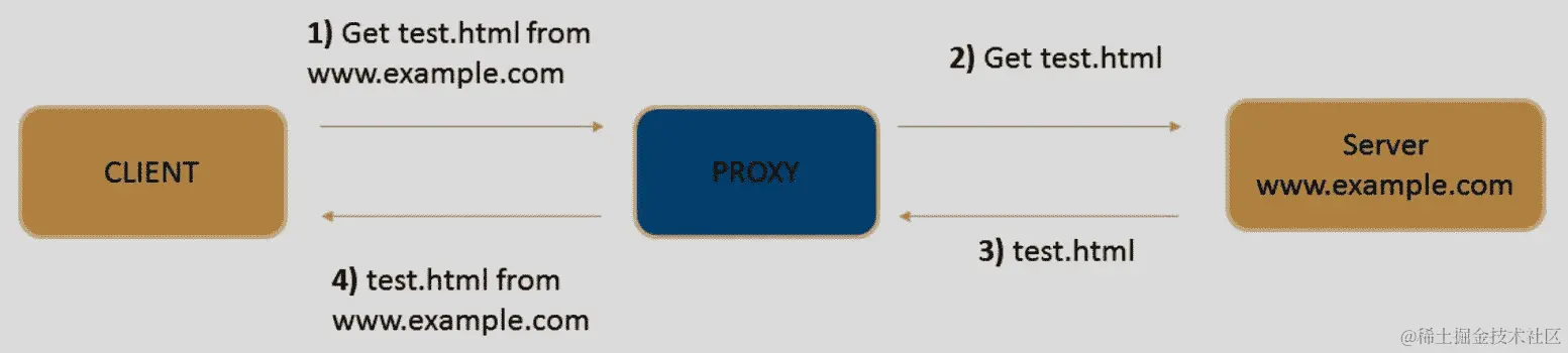 HTTP 代理是一个充当两个通信方之间中介的服务器。客户端和服务器之间没有直接通信。相反,客户端连接到代理并向其发送请求。然后代理将从远程服务器获取资源,最后将响应返回给客户端: