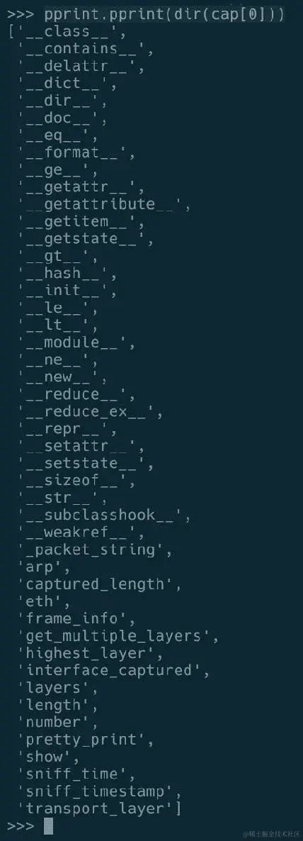 这将打印 PyShark 中数据包的所有可能选项。输出如下: