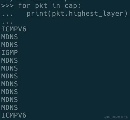 PyShark 是 Wireshark CLI(TShark)的包装器,因此我们可以在 PyShark 中拥有所有 Wireshark 解码器。我们可以使用 PyShark 来嗅探接口,或者分析pcap文件。