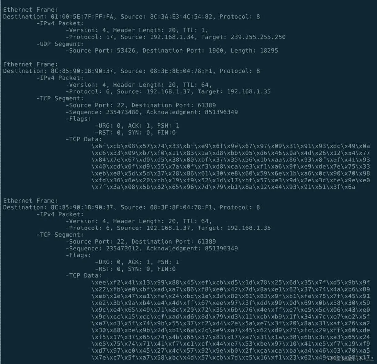 - 类似地,更新函数以解包 UDP 和 ICMP 数据包。