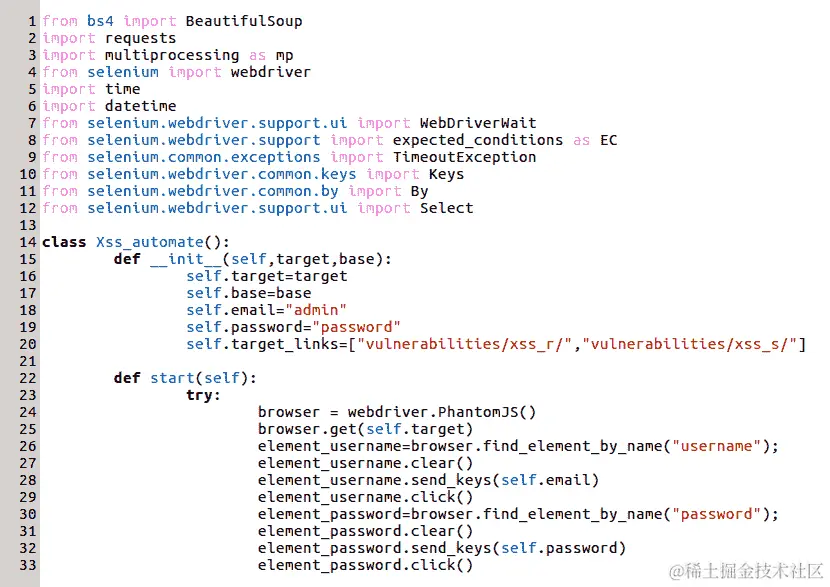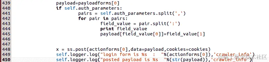 最后,我们检查当前迭代是否在第(44)节中进行身份验证。如果没有进行身份验证,则调用爬虫的start()方法,并将auth标志设置为True。