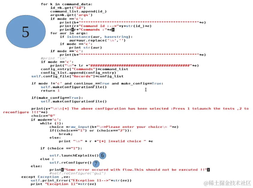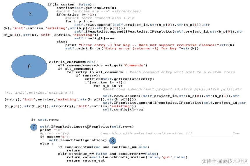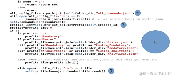 突出显示的部分**(6)读取我们的all_config_file程序变量中的 JSON 文件,最终进入self.commandsJSON类变量。突出显示的代码部分(7),(8)和(9)**加载要与扫描一起使用的扫描配置文件: