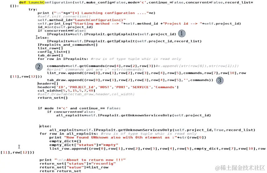 在这一节中,让我们来看一下launchConfiguration()方法,它加载默认配置,并且还允许用户进行微调或重新配置。此外,它调用了文件的中心逻辑,实际上会启动脚本执行,即launchExploits()。