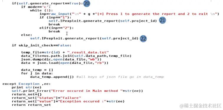 一旦对所有发现的主机和端口执行了所有测试用例,就该生成包含屏幕截图和相关数据的报告了。这部分由第**(20)和(21)**节处理,如下面的代码片段所示: