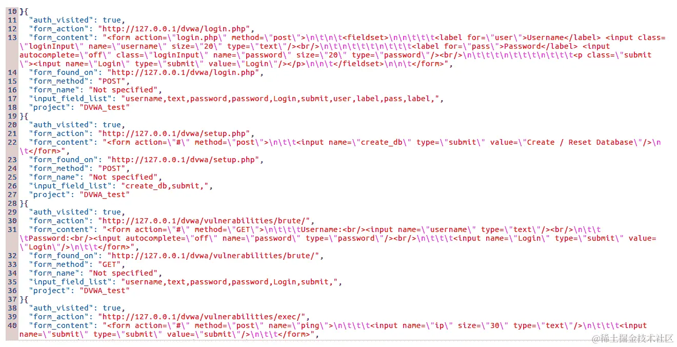 现在让我们浏览应用程序的results文件夹,位于<Xtreme_InjectCrawler/results>路径,以查看发现的 URL 和表单如下: