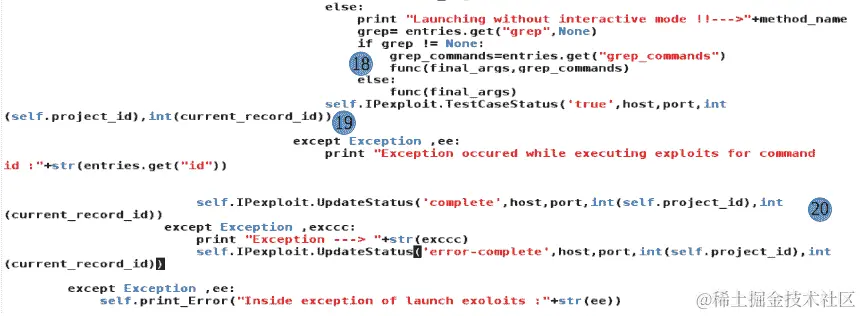 对于 CLI 版本,launchExploits()是由launchConfiguiration()调用的。然而,在 GUI 版本中,launchExploits()只能由parse_and_process()方法调用。有关此方法的更多信息可以从前面的截图中看到。