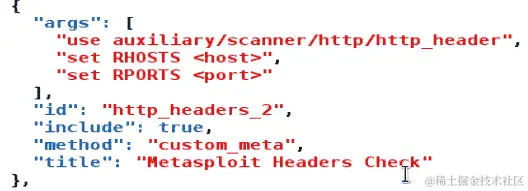 从前面的分叉中可以看出并分类,名为http的服务的所有测试用例将放在一个 JSON 列表中,其键为Commands。Commands列表中的每个条目都将是一个 JSON 字典,其中包含以下条目:{"args":[],"id":"","method":"","include":"","title":""}。每个字典构成一个要执行的测试用例。让我们试着理解每个条目: