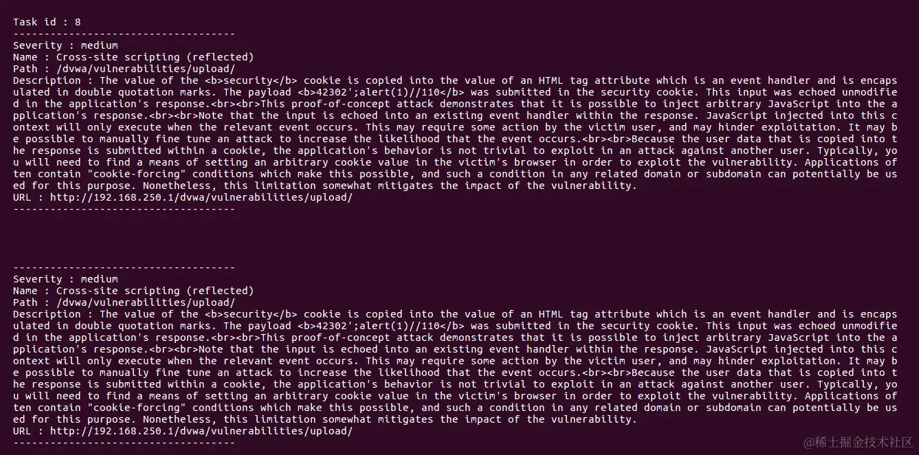 include**: **include参数有两个值:True和False)如果我们不希望将测试用例/脚本包含在要执行的测试用例列表中,我们可以设置include=False。在选择扫描配置文件时,此功能非常有用。有时我们不希望在目标上运行耗时的测试用例,例如 Nikto 或 Hoppy,并且更喜欢仅运行某些强制性检查或脚本。为了具有该功能,引入了包含参数。我们将在查看我们的扫描仪的 GUI 版本时进一步讨论这一点。 -