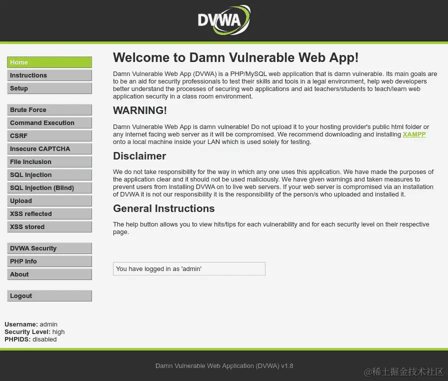 我们将测试我们的爬虫针对著名的 DVWA 应用程序,以查看它发现了什么。我们需要启动 Apache 服务器并在本地提供 DVWA。可以通过运行以下命令启动 Apache 服务器:
