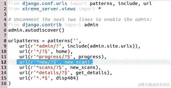 前面突出显示的行表示新爬行项目的 URL 与满足请求的views方法之间的映射。因此,我们将在views.py文件中有一个名为new_scan的方法。文件的路径是Chapter8/Xtreme_InjectCrawler/XtremeWebAPP/xtreme_server/views.py。方法定义如下: