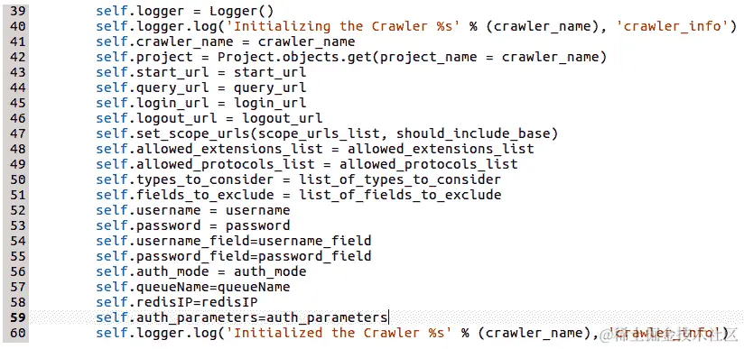 以下代码片段代表了crawler类的构造函数。它初始化了所有相关的实例变量。logger是一个自定义类,用于记录调试消息,因此如果在爬虫执行过程中发生任何错误,它将作为一个子进程被生成并在后台运行,可以进行调试:
