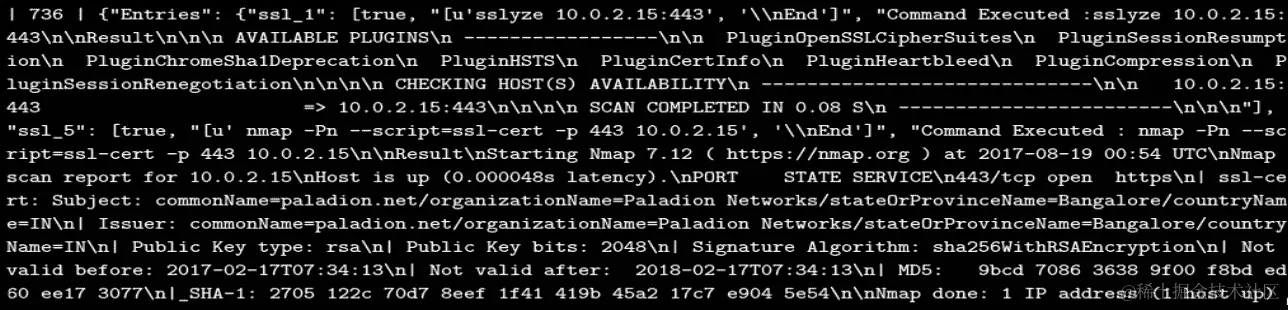 结构如下:{"http_5":['include_command,commands_executed,results_obtained]}。如果http_5是键,那么值是一个包含三个条目的列表。第一个条目表示命令是要包含还是执行(取决于所选择的扫描配置文件)。第二个条目保存在终端上执行的实际命令。最初它设置为 0,但一旦执行,http_5的0将被替换为nmap -Pn --script=banner.nse -p 80 10.0.2.15。第三个0实际上将被执行命令产生的结果所替换。