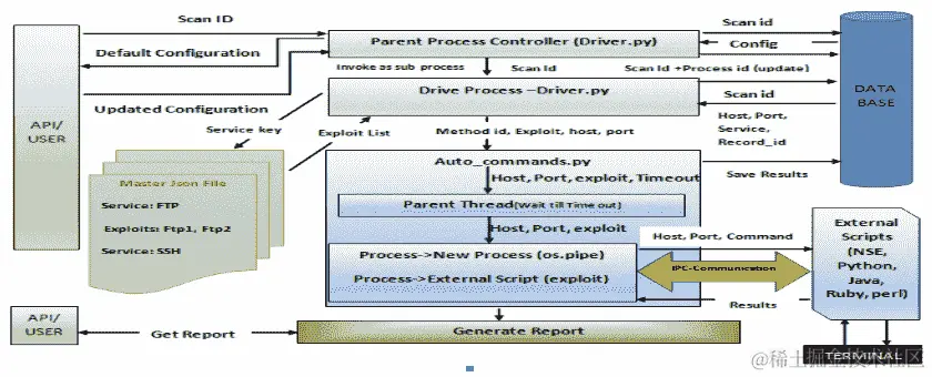 扫描活动结束后,我们将把所有结果保存在我们的 MySQL 数据库表中。在服务扫描的情况下,根据发现的服务,我们将得到一个配置好的脚本列表,如果找到特定的服务,我们需要执行这些脚本。我们使用一个 JSON 文件来映射服务和相应的要执行的脚本。
