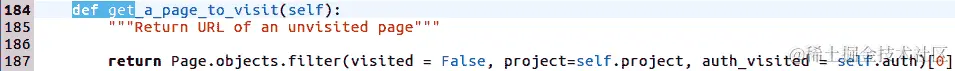 在第**(18)**节中,我们通过调用get_a_page_to_visit()方法从后端的Page表中获取未访问的页面,该方法的定义在这里给出: