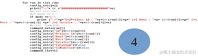 代码entries=getTemplate(k)将为每种服务类型返回一个类似上述的条目。我们准备一个名为rows的列表,其中放置主机、端口、服务、开/关状态和条目/command_template。执行该活动的代码片段是self.rows.append((self.project_id, str(h_p[0]), str(h_p[1]), str(k), 'init', entries, service_status, str(h_p[2]), str(h_p[3])))。