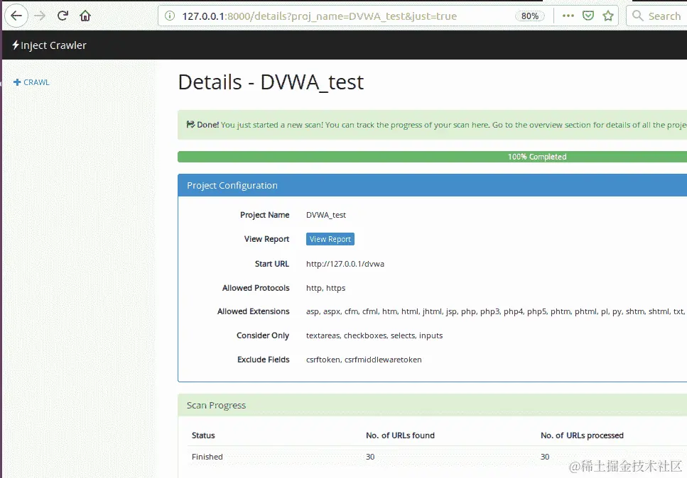 如前所述,我们有一个用户界面,将收集要爬取的 Web 应用程序的用户参数。因此,请求被转发到views.py文件,然后我们将调用爬虫驱动文件run_crawler.py,然后再调用crawler.py。new_scan视图方法获取所有用户参数,将它们保存在数据库中,并为爬取项目分配一个新的项目 ID。然后将项目 ID 传递给爬虫驱动程序,以便引用并使用 ID 提取相关项目参数,然后将它们传递给crawler.py开始扫描。