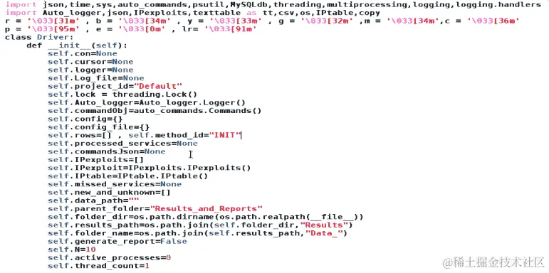 前面的类代表了这个 Python 模块的主要父类。正如我们所看到的,我们已经导入了其他各种 Python 模块,如 JSON、SYS 和 psutil,以便与这个类一起使用。我们还可以看到,我们已经在这个模块中使用了其他类,如auto_commands、Auto_logger、IPexploits和IPtable。这些不是 Python 的内置模块,而是我们自己的类,用于执行我们服务扫描引擎的不同功能。我们将在稍后更详细地讨论这些。