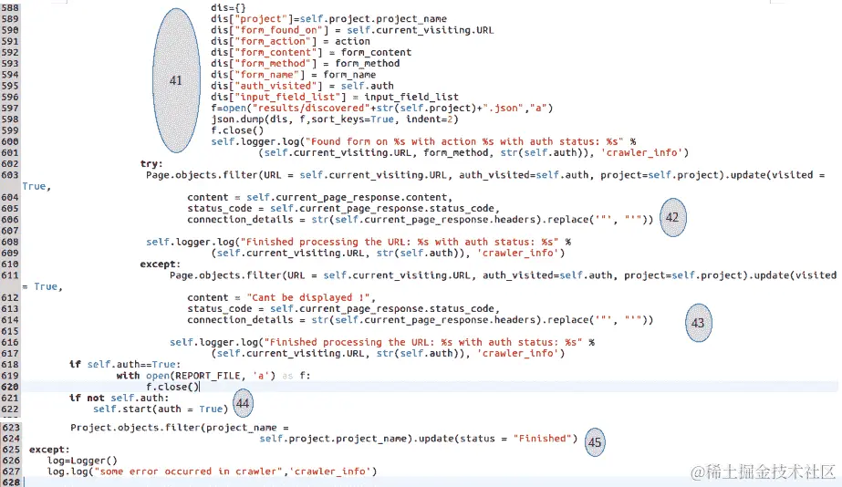 代码的第(42)节更新了刚刚解析内容的网页的访问标志,并标记为当前auth模式的已访问。如果在保存期间发生任何异常,这些异常将由第(43)节处理,该节再次将访问标志标记为true,但另外添加异常消息。