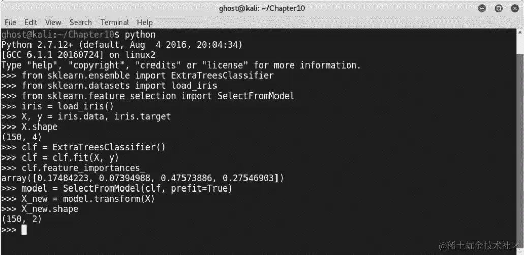 >>> from sklearn.ensemble import ExtraTreesClassifier